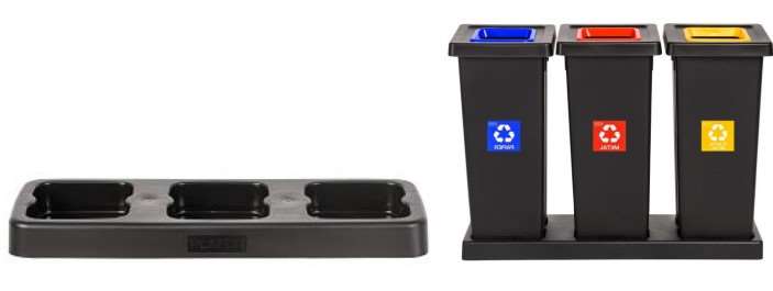 Cette base plastique 3 postes permet de recevoir 3 poubelles Fit 50L offrant ainsi un système de tri élégant et pratique.