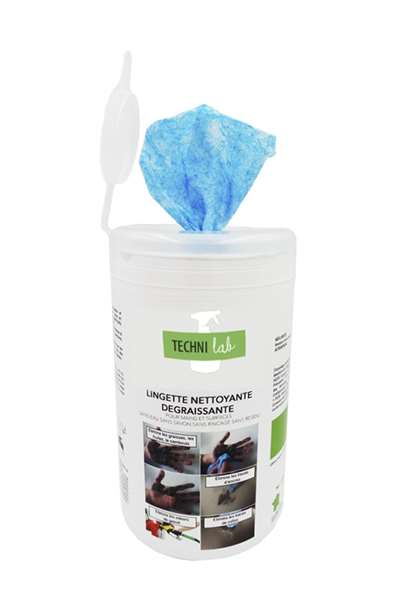 Lingette nettoyante degraissante pour mains et surfaces destructrice d'odeurs fuel gasoil kerosene parfum floral sans eau sans savon sans rincage sans residu tissu double face cote doux cote grattantRéférence longue : BL02/H/GB80BWCB/C HANDY WIPES