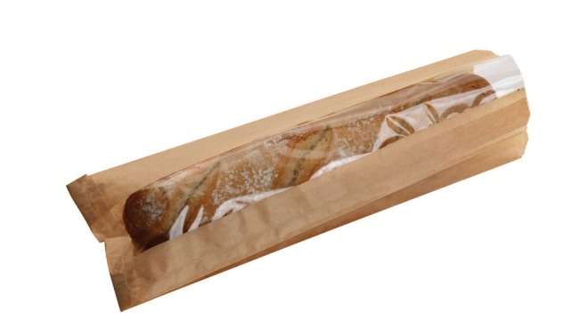 Paquet de 1000 sachets à sandwich en papier kraft avec fenêtre en polypropylène 90x350 mm avec soufflets de 65 mm
