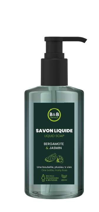 B&B France 300ml savon liquide en flacon pompe Cannes Bergamote & Jasmin certfication: Cradle to Cradle Silver et Vegan Society REFERENCE LONGUE : AQS300CNLQS-121316